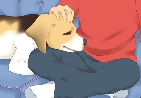 Spend more time with your dog. It may be that your dog is depressed because it is simply lonely. To help your dog overcome its depression, make sure to spend quality time with it every day. If this is the dog's problem, a little attention will help it get its pep back in no time. Quality time with your dog can consist of a variety of activities. It could mean going for long walks. It could mean playing catch. It could even mean simply snuggling up on the couch together and petting it for a while.