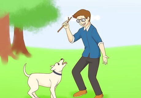 Train your dog. If you are looking for ways to treat your dog's depression, start a training program with it. This is a good way to spend quality time with your dog. Doing basic training can often help with general mental stimulation and depression that is caused by boredom or loneliness. The type of training you do with your dog depends on its personality and strengths. Some dogs can learn very complicated skills, such as running obstacle courses. Other dogs will benefit from simple training, such as teaching a dog to sit or stay.