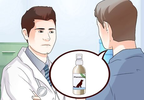 Discuss the use of pheromones with your veterinarian. If you are considering using pheromones on your dog you should discuss it with your veterinarian first. Your veterinarian may have suggestions for if and when pheromones should be used, as well as suggestions for what specific brands to use on your dog. Having your veterinarian suggest a brand of pheromones to use can be very helpful, as there are many products available and choosing one can be difficult. Pheromone products for dogs are sold over the counter. You will not need to get them directly from your veterinarian. However, it is a good idea to discuss any veterinary treatment you are planning on giving your dog with its veterinarian.