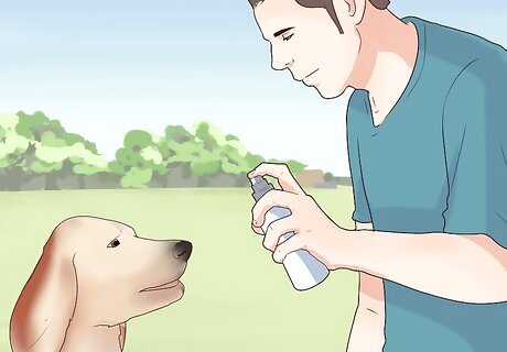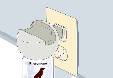 Use the pheromone product as directed. Follow the instructions that came on the product's label. This will tell you how much to use and when to apply it if you bought a spray-on pheromone product. The diffuser products are usually just plugged in to an electrical plug near your dog's favorite spot. If you have multiple pets in your house, it is still safe to use pheromones. There have been no reported negative side effects from pheromone therapy and the pheromones might even help your other pet's mental well-being also.