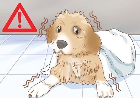 Treat any hypothermia first. If your dog has hypothermia or low core temperature, this needs to be treated before the frostbite. Wrap your dog in warm blankets or towels. You can also place water bottles filled with hot water around the body. Make sure to wrap the bottles in cloth to keep it from burning the dog’s skin, and make sure the blankets or towels you wrap around the dog are dry. Symptoms of hypothermia include violent shivering followed by listlessness and a rectal temperature that is below 95°F (35°C). Other signs include a weak pulse, lethargy, and coma.