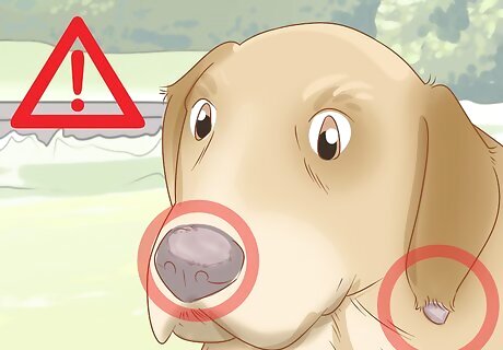 Monitor your dog for days after being in extreme cold. The signs of frostbite may not appear immediately. Your pet may be suffering from frostbite for a few days before they even begin to show symptoms. After being outside with your dog in extreme cold conditions, or if they came into contact with ice or snow, watch them carefully for any symptoms of frostbite.