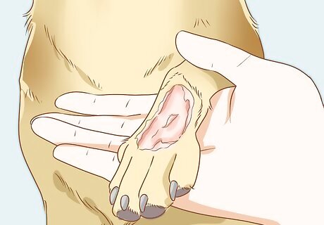 Look for darkened or dead skin. If your dog gets really bad frostbite, the skin will start turning dark. It may turn black after a few days. This is evidence of third degree frostbite. There may be a clear line between damaged and healthy tissue on the skin. These areas may have pus from a bacterial infection and the affected area may have a foul smell.