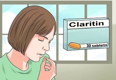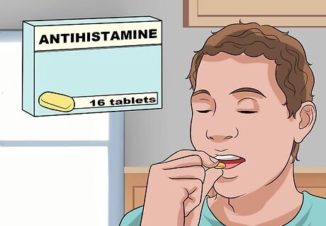 Take antihistamines. Antihistamines work by reducing your body's allergic reaction to an irritant (in this case, mold). They may or may not be paired with a decongestant to reduce nasal stuffiness. You can purchase antihistamines without a prescription at most pharmacies and drug stores. Antihistamines (including OTC antihistamines) should never be given to anyone under two years of age, as they may cause life-threatening problems in young children. Antihistamines may have negative interactions with certain medications or if used by people who have certain medical conditions. For example, antihistamines can raise your blood pressure, so you may not be able to take them if you have high blood pressure. Antihistamines may also not be advised for people with glaucoma, kidney disease, and urinary problems. Talk to your doctor before taking antihistamines, even if they are OTC medications. Common side effects include drowsiness and thick secretions from the respiratory system. However, some rare, more serious side effects have been reported in some individuals.