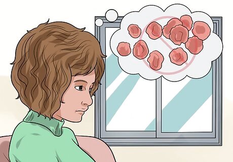 Avoid exposure to airborne mold spores. Some people with severe reactions to mold may need to limit their exposure to outdoor air when mold spore concentrations are at their highest. If at all possible, limit outdoor time on those days and try to avoid strenuous activity as much as you can. Most weather reports include a mold count for the day. This can tell you what the expected prevalence of airborne mold spores will be for a given day. Check your region's mold counts and limit or avoid outdoor activities on days when the mold count is high.