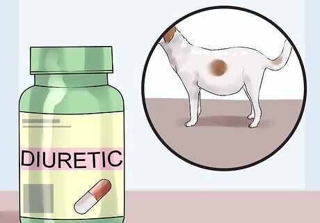 Administer a diuretic. Liver disease can cause a buildup of fluid in the abdomen, a condition called ascites. If your dog has ascites, your vet will prescribe a diuretic. The diuretic will cause your dog to urinate more frequently, removing the excess fluid. Severe ascites can enlarge a dog’s abdomen so much that breathing becomes difficult. If your dog has ascites, do not leave it untreated. To prevent accidents in the house, be ready to take your dog outside more frequently so it can urinate.