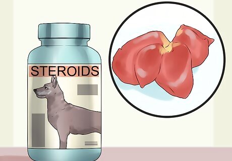 Use an anti-inflammatory medication. If your older dog has chronic hepatitis, your vet will prescribe a medication, such as a steroid, that will decrease inflammation and help protect the liver. Steroids can have several negative side effects, such as GI ulcers, intestinal bleeding, and fluid retention. Your vet will need to carefully monitor your dog if it is on steroids.