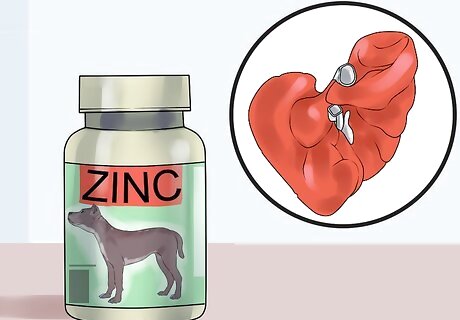 Give your dog zinc. Liver disease can cause copper to build up in the liver’s cells. This extra copper causes liver inflammation and scarring. If your older dog has chronic hepatitis, your vet will prescribe zinc for your dog. Zinc will help prevent copper from building up in your dog’s liver.