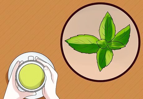 Make peppermint tea. Another herb known to help with stomach upsets is peppermint. Peppermint is known to reduce spasms in the digestive tract. These spasms can induce nausea and vomiting. Peppermint may come in the form of tea or oil. For nausea and vomiting, tea is the recommended form of peppermint since it addresses the spasms in the stomach. unlike peppermint oil which normally use as a relaxing and calming agent. Peppermint tea is prepared by brewing the leaves in boiling water. Chew the leaves between sips of tea. A cup of peppermint tea during episodes of nausea and vomiting can help a lot.