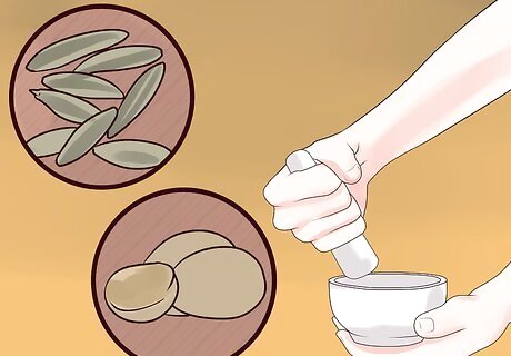 Experiment with cumin and nutmeg. A cumin and nutmeg remedy is prepared by crushing one teaspoon of cumin seeds and infusing it with a pinch of nutmeg. Boil a cup of water and add the crushed cumin and nutmeg. Strain and slowly sip the mixture. Cumin is known to have a warming property. This warming property relieves acid secretion in the stomach. Nutmeg is an herb that contains chemicals which aid in digestion and also help in neutralizing hyperacidity of the stomach.