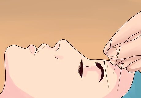 Sign up for acupuncture. Acupuncture is known as an alternative treatment for easing a migraine and its symptoms such as nausea and vomiting. Acupuncture is done through the insertion of extremely thin needles at strategic points around the body. Furthermore, acupuncture encourages tranquility and relaxes the person suffering from cluster headaches. The points that need to be stimulated for nausea and vomiting include the following: foot yang ming, ST 36 (lower he-sae), ST 25, PC 6, Ren 10 (pyloric sphincter, digestion), Li Nei Ting (digestion, under ST 44).