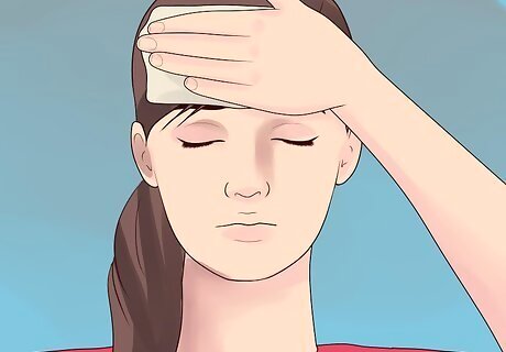Apply a cold compress to your forehead. An ice cold towel can be placed over the forehead to help alleviate the pain of the migraine. It is believed that the cold temperature helps to constrict the dilated blood vessels on the surface of the brain which are causing the headache symptoms. Once the migraine itself is alleviated, symptoms of nausea and vomiting should subside.