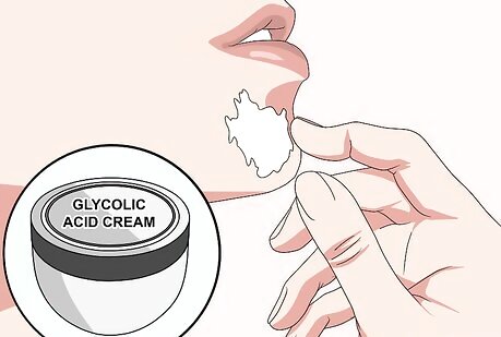 Apply glycolic acid cream. If you are concerned about wrinkles, fine lines, or other signs of aging, you can prevent them using a glycolic acid cream. Apply it at night before you put on your moisturizer. If your skin does well with it, you can start using it during the day after about a month. A cream can help prevent or minimize fine lines. While it cannot remove deep lines, such as laugh or frown lines, it may be able to soften them or reduce their appearance. You’ll need to turn to a medical procedure like laser treatment, dermal fillers, or Botox to remove deep-set lines.