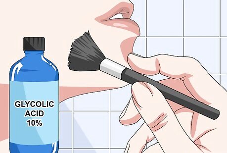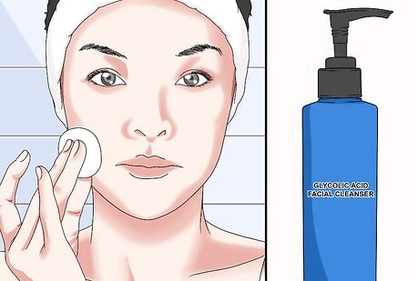 Clear up your face with glycolic acid facial cleansers. A face wash with glycolic acid can help reduce and prevent acid over time. Because the concentration is lower, this is a better treatment for those with sensitive skin. Wash your face with it in the morning, at night, and after sweating heavily.