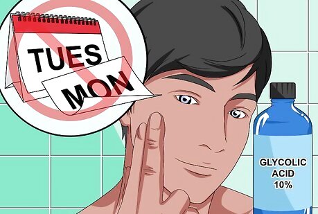Avoid initial daily usage if you have sensitive skin. Individuals with sensitive skin should not apply a product containing glycolic acid daily, as the abrupt introduction of the acid can damage your skin. Unlike scrubs, the glycolic acid does not damage low layers of skin, but will dissolve the upper layer, which can lead to reddened or peeling skin. You’ll reduce the likelihood of skin irritation if you begin by applying the glycolic acid product every other day. After a month of non-daily usage, you can begin applying the glycolic acid product daily.