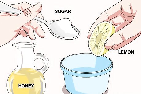 Make your own mask at home. Glycolic acid is found naturally in honey, sugar, and lemon. You can make your own natural mask at home using these common ingredients. Mix one part honey to one part raw sugar, and add the juice of half a lemon. Apply to your face, avoiding your eyes. Leave it on for five to ten minutes before rinsing off.