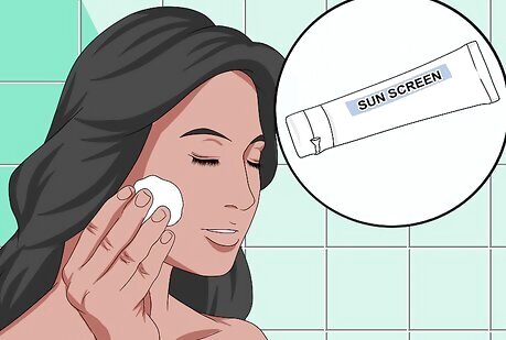 Use sunscreen after applying glycolic acid. After you’ve used a facial treatment which contains glycolic acid—whether it was in a facial wash or a facial peel—your skin will have increased sensitivity to UV light. In order to compensate for this and to reduce potential damage to your skin, apply high-SPF sunscreen if you’re going to be in the sun after using glycolic acid. The increased UV sensitivity occurs as an effect of all AHAs, as these abrasive chemicals wear away layers of outer skin that would otherwise protect your face from UV rays.