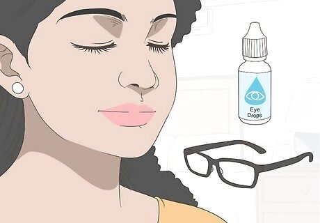Cut back on screen time while your eyes are healing. The blue light from phones, tablets, and computer monitors may further irritate your eyes. Either stop or (more realistically) reduce your use of electronic devices with screens until your symptoms clear up. Take breaks every 20 minutes to rest your eyes when you do have to look at a screen, and use eye drops if your eyes feel dry or irritated. You can also purchase computer glasses to help filter out the glare from your screens, although not all eye experts agree that they are especially effective at preventing eye strain.