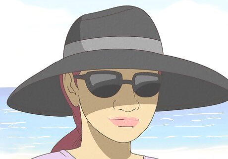 Wear a wide-brimmed hat along with your sunglasses. While a hat will definitely reduce the amount of UVA and UVB rays that reach your eye area, don’t use it as a substitute for sunglasses or snow goggles. Instead, wear the wide-brimmed hat in addition to your protective eyewear.