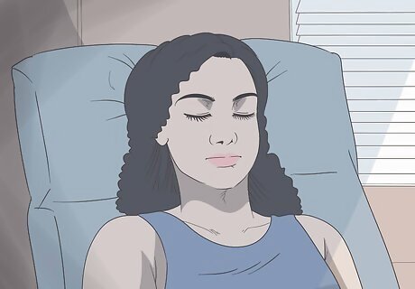 Go indoors and spend time in a dark or dimly-lit room. If you’ve been spending time outdoors or exposed to bright light from another source, find a dimly lit room to give your eyes a break. Turn out the lights and pull the curtains or blinds to make the room darker. Then, relax in the room for a few hours so your eyes can recover. If you’re stuck outside, find a shady spot and put on a pair of sunglasses and a wide-brimmed hat to block out as much sunlight as possible.