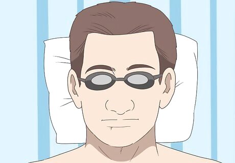 Shield your eyes with protective eyewear when using a tanning bed. If you regularly go tanning, wearing eye protection is essential to prevent eye sunburn. Use the protective eyewear provided by the salon, or bring your own. Make sure that the eyewear blocks at least 99% of UVA and UVB rays.