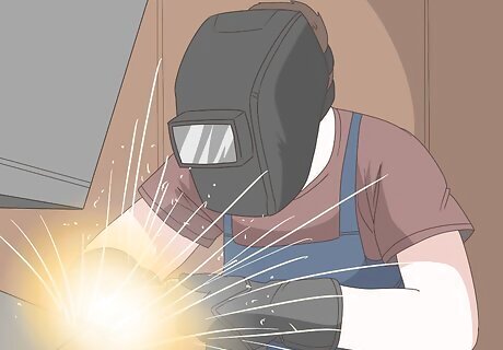 Use a welding helmet if you’re working with or around a torch. You can get an eye sunburn, also known as a flash burn, from welding or watching someone else use a blow torch. If you’re ever in either situation, make sure to protect your eyes with a welder’s helmet. Wear the helmet the entire time the torch is on.