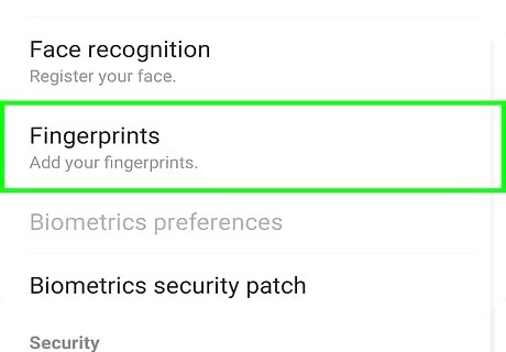 Tap Fingerprints or Imprint. If you don't see one of these options (or something similar), you may have to tap an option called Screen lock type.