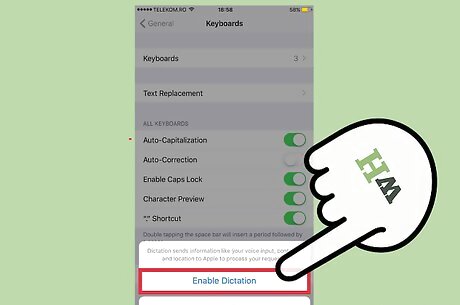 Allow Siri to dictate. You can also turn on dictation via the keyboard settings menu. Siri will take dictation for those iPhones (4s or newer) and iPad (third-generation or newer). To activate the dictation process, simply tap the microphone button on the keyboard. Then, you can begin speaking and Siri will type it out for you. Siri’s dictate function allows you to add punctuation as well. For example, if you state, “how does ten work for you question mark,” it will appear as, “How does ten work for you?” The capitalization process is automatic as well. Always check your transcriptions for accuracy as additional noise can interfere with the dictation process.