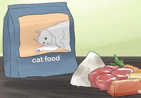 Examine the ingredient names. Become familiar with the definitions of the ingredients listed on cat food labels. This way you can get an idea of what you are feeding your cat. Here are some common terms and their definitions: Meat: the clean flesh of slaughtered mammals such as cattle, chicken, lamb, and turkey. Flesh can mean heart, tongue, diaphragm, esophagus, striated skeletal muscle, sinew, overlying fat and skin, and blood vessels and nerves found within these pieces of flesh. Meat by-products: the clean parts of slaughtered mammals (not including meat) such as kidney, brains, liver, blood bone, spleen, brain, fatty tissue, intestines and stomach. Meat by-products do not include horns, teeth, hair, or hooves. Poultry by-products: the clean parts of slaughtered poultry such as feet, heads, kidney, liver, spleen, stomach, lungs, heart, and intestines. Fish meal: the clean, undecomposed ground tissue of fish cuttings or whole fish. Corn gluten meal: the by-products of manufactured corn syrup and starch, as well as the dry residue after the elimination of starch, germ, and bran. BHA: a fat preservative. Tocopherols: a naturally occurring compound, such as vitamin E, used as a preservative.