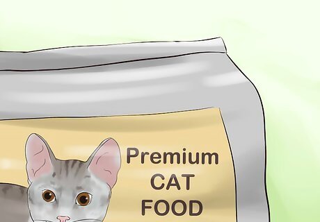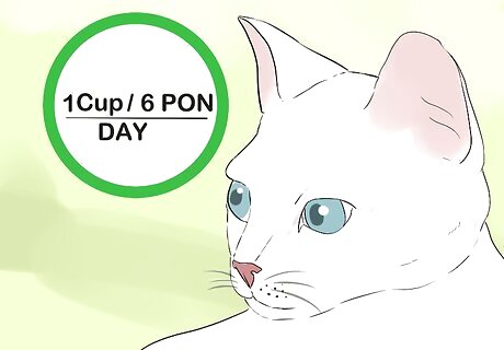 Examine the feeding guidelines. The feeding guidelines often recommend feeding more than your cat needs and should be interpreted as general estimates. How much you feed your cat depends on its environment, temperament, age, activity level, and other factors. The product should state something like “feed one cup per six pounds of body weight daily.” Food labeled “for all life stages” should have specific feeding directions for maintenance, growth, and gestation. If you are unsure how many calories you should be feeding your cat, ask your veterinarian and they will calculate it for you.