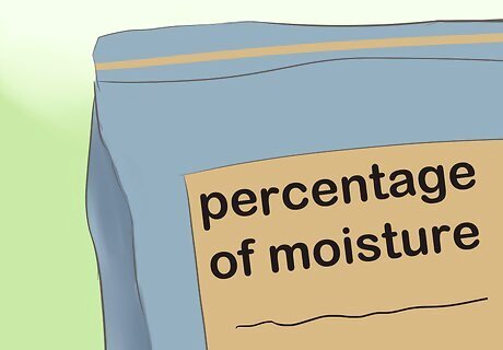 Locate the percentage of moisture content. By locating the moisture content percentage, you can determine the dry matter percentage. For example, if a dry food contains 15 percent moisture, then 85 percent of the food is dry matter. On the other hand, if a canned food contains 85 percent moisture, then 15 percent of the food is dry matter.