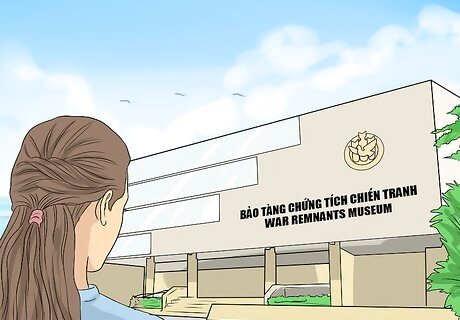 Visit public history attractions. There are several museums and monuments dedicated to the Vietnam War, both in the U.S. and in Vietnam. Visiting these museums or monuments, especially on a guided tour with a subject expert, can provide greater insight into the war. These museums offer a mixture of artifacts, displays, videos, and placards to explore the war and its effects. You might visit: The National Vietnam War Museum in Texas. The War Remnants Museum in Ho Chi Minh City. This museum, like the National Vietnam War Museum in the U.S., has many tanks and vehicles used in the war. The Vietnam War Memorial, designed by Maya Lin, in Washington, D.C. The monument can improve understanding of the war’s meaning. It has the name of every soldier who was killed during the war etched onto it.