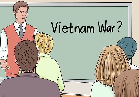 Take a class about the war. There are many courses available at universities, community colleges, and online that examine the war either directly or as part of a larger curriculum about modern U.S. history, the Cold War, or military history. The war can be understood as part of a program in political science, history, international relations, or a related discipline. Contact your local colleges and universities and express interest in learning more about the Vietnam War. Alternately, search online for online courses that you could enroll in.