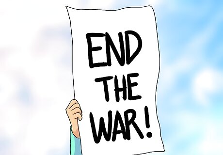 Talk to veterans of the war. Prepare a list of questions you want to ask before beginning your conversation. Use care when talking to people who survived war, especially veterans. Do not assume vets are proud of their service. For many veterans, their military experience was traumatic and remains difficult to talk about. For instance, do not ask, “How many people did you kill?” or say “I would have killed many enemy soldiers.” These statements might make veterans uncomfortable or even angry. For similar reasons, do not say to a vet, “I’m glad you made it home okay.” Even if veterans are physically unharmed, they might feel a great deal of psychic pain and emotional frustration about what they did or saw in Vietnam. Start with easy questions like, “When did you serve in Vietnam?” and work your way up through more difficult questions like, “Did you see many battles?” Arrange a meeting with a Vietnam vet in your area by contacting Vietnam Veterans against the War or the Wounded Warriors Project to learn more about the military experience of the war.
