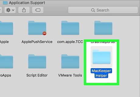Locate the "MacKeeper Helper" folder. It's somewhere in the Application Support folder. If you don't see this folder in the Application Support folder, the process of uninstalling MacKeeper also deleted the folder.