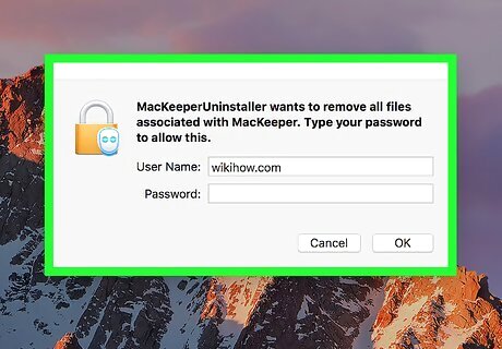 Drop MacKeeper in the trash. Simply removing your finger from the mouse will accomplish this. You should see a pop-up window from MacKeeper appear. You may have to enter your administrator account password and click OK before the pop-up window appears.