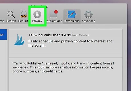 Click the Privacy tab. It's to the left of the Extensions tab you're currently on.