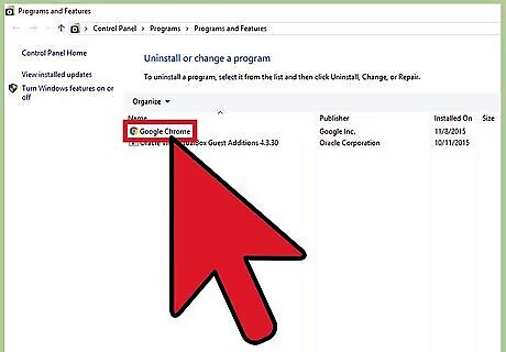 Select the program you want to uninstall. In the “Programs and Features” window, you will see a table listing all the programs installed in your device. Scroll up or down the list until you’ve located the program you want to remove. Click or tap on it select it.