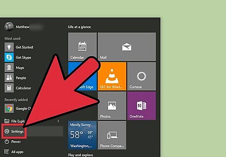 Choose “Settings.” At the lower portion of the left pane of the Start menu, click/tap “Settings.” The Settings menu will appear in a different window.