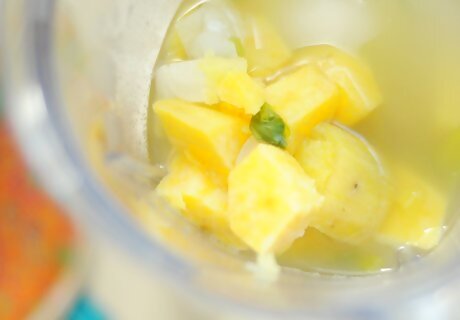 Cook certain foods before processing. Some foods will be difficult to grind in the food processor if they are not softened beforehand, such as apples, potatoes, and pears; whereas foods such as meats will need to be cooked if they are raw. Boil, bake, or steam fruits and vegetables to soften them before processing. Remove the skin and fat from all meats such as chicken, turkey, and beef before cooking them and placing them in the food processor. Cook hard grains such as millet or quinoa according to the directions on the manufacturer's packaging before placing them in the food processor.