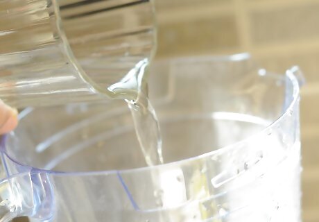 Add up to 3 tbsp. (44.36 milliliters) of water to the food. The amount of water you add may vary depending on the consistency of the food you are processing. For example, if you boiled potatoes, you may not need to add water at all; whereas if you cooked chicken, you may need to add water. Add extra water to the food as needed depending on your baby's ability to chew. For example, if you are just beginning to introduce your baby to solid foods, you may want to add the full 3 tbsp. (44.36 milliliters) of water or more to the food you are grinding to achieve a soup-like consistency. Grind the food and water together in the food processor. After the food and water mixture is well-blended, you can serve it to your baby.