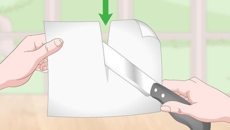 Test your knife by running it through a piece of paper. You may already know that your knife is dull, but if you aren’t sure, fold a piece of newspaper in half (or just use a single sheet of computer paper), hold it up in the air, and bring your knife down to cut through it. If your knife doesn’t slice through the paper, it’s time to sharpen it. The knife should continuously cut through the paper without stopping if it is sharp and in good shape.