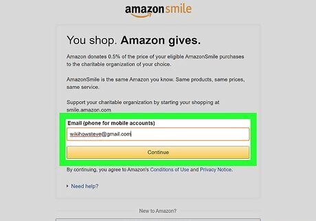Login to your Amazon account. Enter your email and password. If you do not have an Amazon account, go to https://www.amazon.com/ and click Account & Lists at the top to create one.