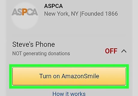 Tap Turn On AmazonSmile.. Tap Start shopping and start shopping on the app as normal.