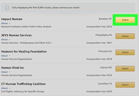 Choose a charitable organization. You can select one of the AmazonSmile spotlight charities, or search for one yourself. Click Select to choose. Click About to learn more about a particular organization. To change your chosen charity later, click on Account & Lists and then click Change your Amazon Smile charity under Other Programs.