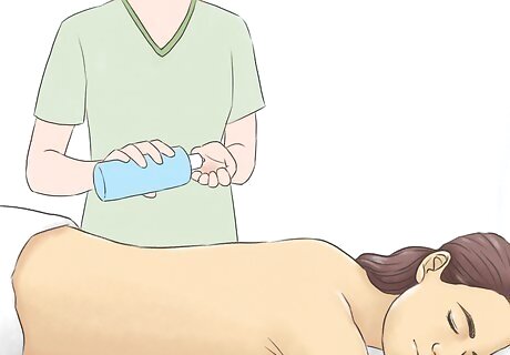 See an aromatherapy professional to get acupuncture or a massage. Massage therapists and acupuncture specialists often use aromatherapy in conjunction with their services. Contact a masseuse or acupuncturist near you and ask them if they can use a specific oil for your session. If they can fulfill your request and you’re interested in getting acupuncture or a massage, schedule an appointment, and show up ready for some relaxation.Tip: Neither a massage or acupuncture session will do much for your nausea, but they’re great ways to relax and get some good self-care in!