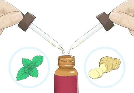 Create an oil blend if you want a dynamic, custom scent. Sometimes, a combination of essential oils works better to combat nausea than a single type alone. For example, a blend of peppermint and ginger may be great if your stomach is a little queasy but you love the cooling aroma of peppermint. You can also add other scents that you enjoy to an oil known for calming nausea. Since you aren’t ingesting anything or using the oil topically, there are no dangers of causing a negative reaction by mixing different oils.