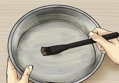 Use the cake release mixture. Take a silicone brush or pastry brush with bristles and dip it into the cake release mixture. Brush the mixture over the entire surface of your baking pan. Ensure that you coat the bottom, the sides, and the inner edges of the pan. Don't worry about applying too much cake release mixture. You won't be able to see it on the baked and cooled cakes.