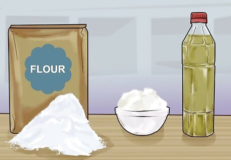 Gather your supplies. To make a homemade cake release mixture that you spread on the pan in stead of spray, you'll need a mixing bowl, mixing spoon, storage container, pastry brush, and these ingredients: 1 cup (125 g) of all-purpose flour 1 cup (205) of solid vegetable shortening 1 cup (237 ml) of vegetable oil