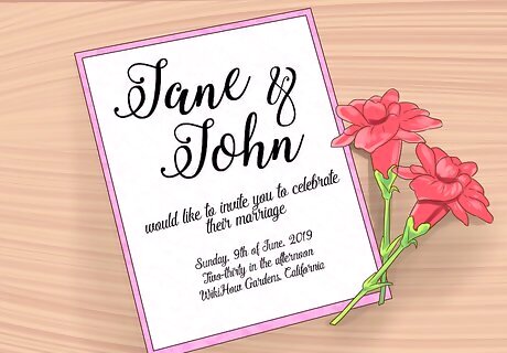 Send out calligraphy invitations. Before your wedding begins, you can start the calligraphy theme with invitations. Send guests invitations written in calligraphy that include you and your spouse's name, as well as the date, time, and place of the ceremony. Make sure the calligraphy you use is fairly legible. You want guests to know the important details and calligraphy can sometimes be difficult to read.